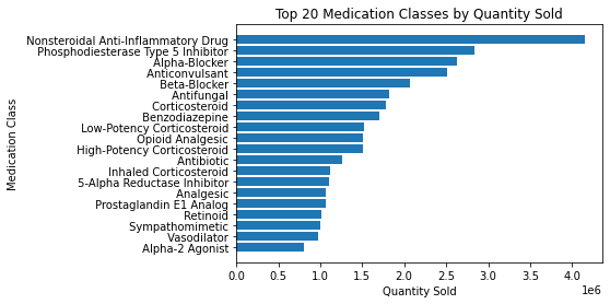 plt.title(f'Top {top_number} Medication Classes by Quantity Sold')