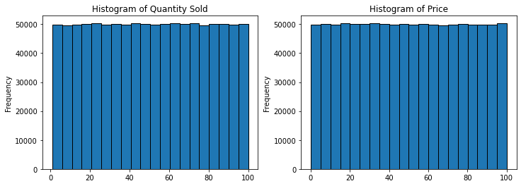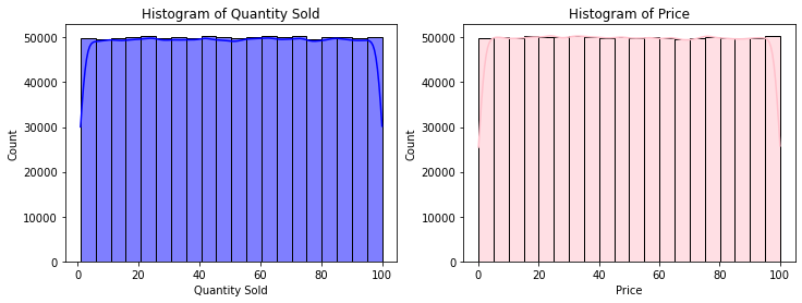 이 중 QUantity Sold랑 Price 만 숫자형인 것을 확인할 수 있음
