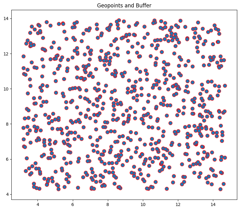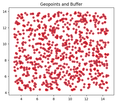 plt.title("Geopoints and Buffer")