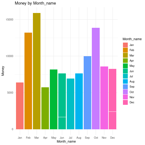 labs(title = "Money by Month_name", x = "Month_name", y = "Money") +