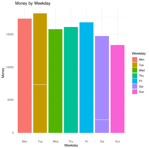 labs(title = "Money by Weekday", x = "Weekday", y = "Money") +