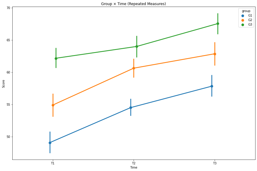 plt.title('Group × Time (Repeated Measures)')