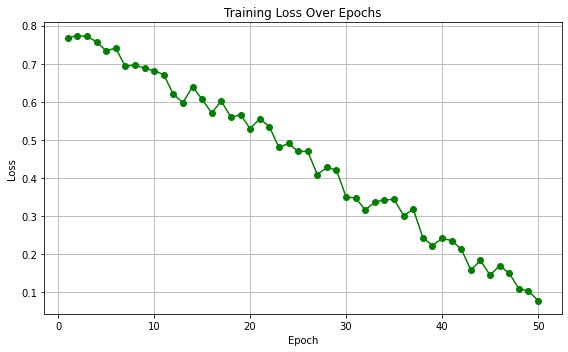 loss = np.linspace(0.8, 0.1, 50) + np.random.normal(0, 0.02, 50) # 손실 감소 과정 (학습 과정)